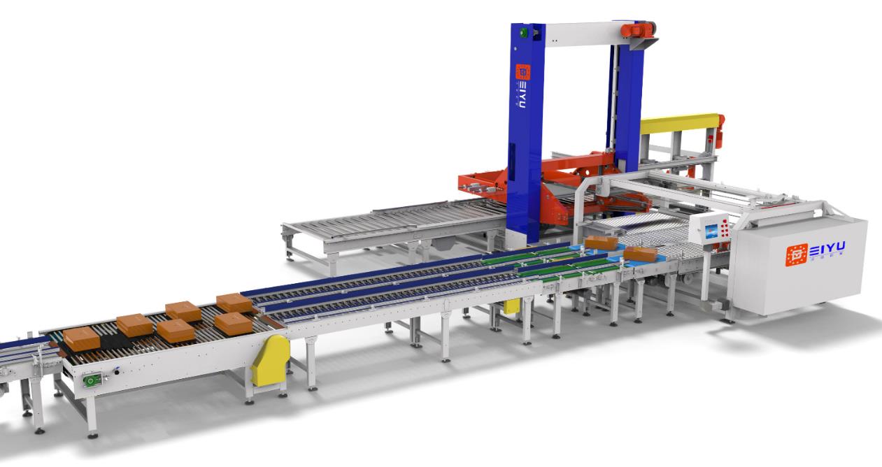 A palletizer is a machine that arranges packaged products (cartons, film packages, etc.) in a certain order and then stacks them on pallets. The stability of the palletizer directly affects the subsequent storage and transportation. The palletizer produced by Anhui Peiyu adopts mechatronics design and stable transmission. The PLC and touch screen electrical control system has functions such as fault alarm prompts, making the equipment operation and maintenance very simple.